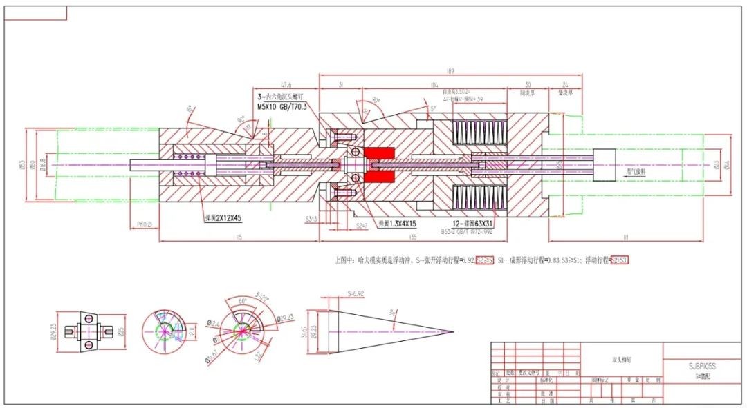 SJBP-105S 雙頭鉚釘3序模具裝配圖