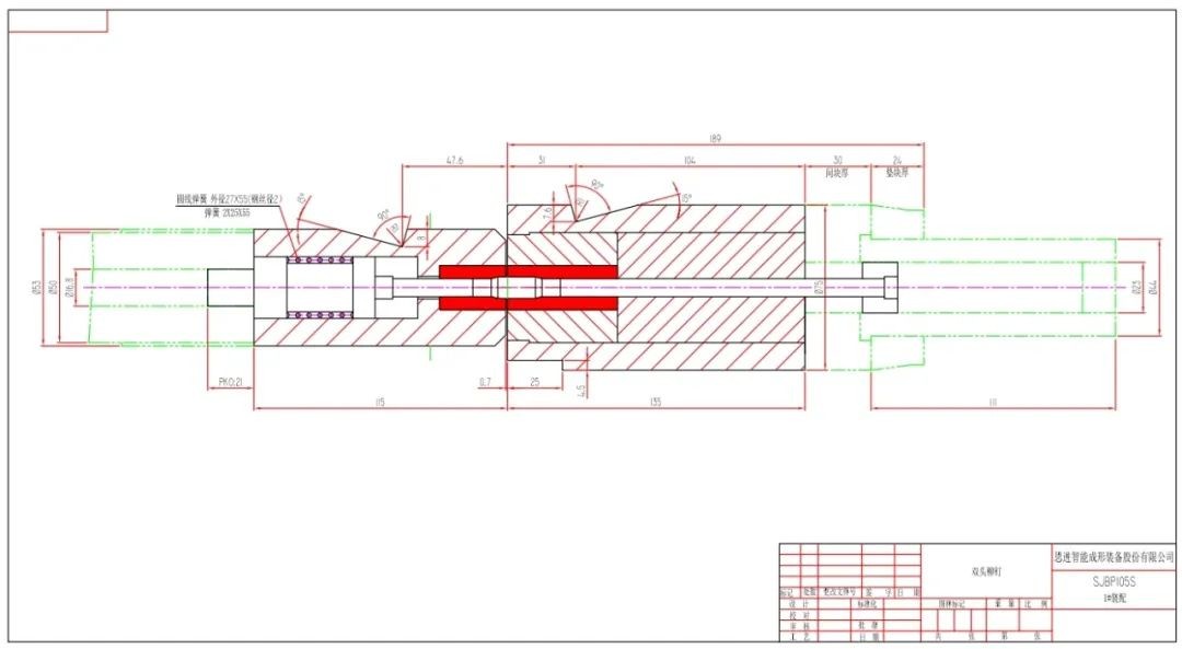 目前,該模具設計方案已應用于思進智能 SJBP-105S 冷成形裝備中,成功為客戶實現了雙頭鉚釘產品的批量化生產。